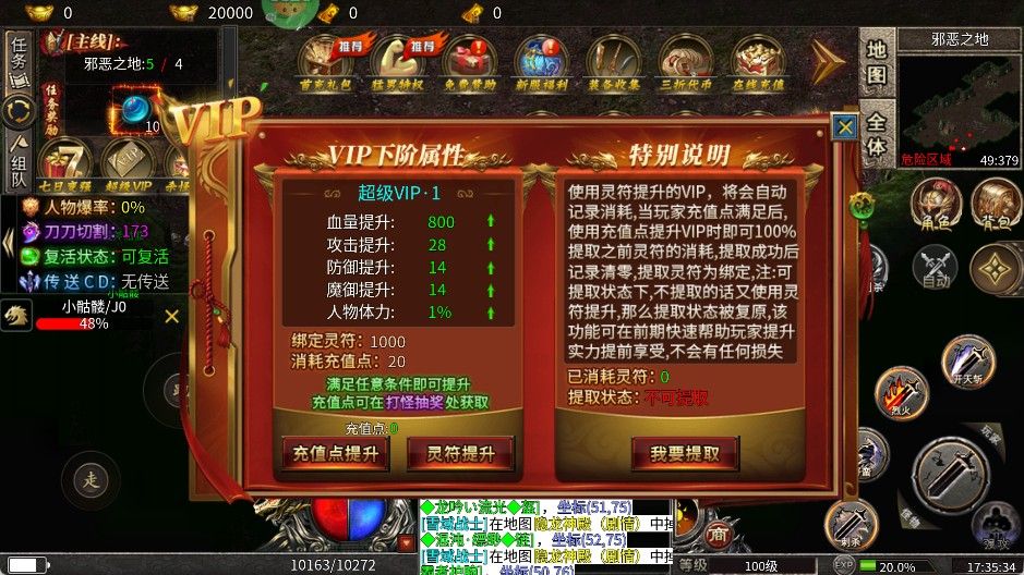 4、击杀怪物能获得充值点,这点很良心。新手玩家要注意合理使用,把充值点优先用在提升战力的关键功能上。
