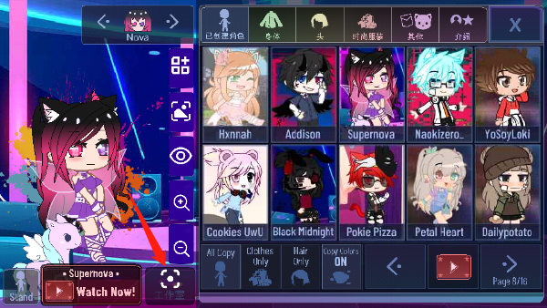 4、这里一共有160个角色供你选择,点击右下角的箭头可翻页寻找你想要的角色。