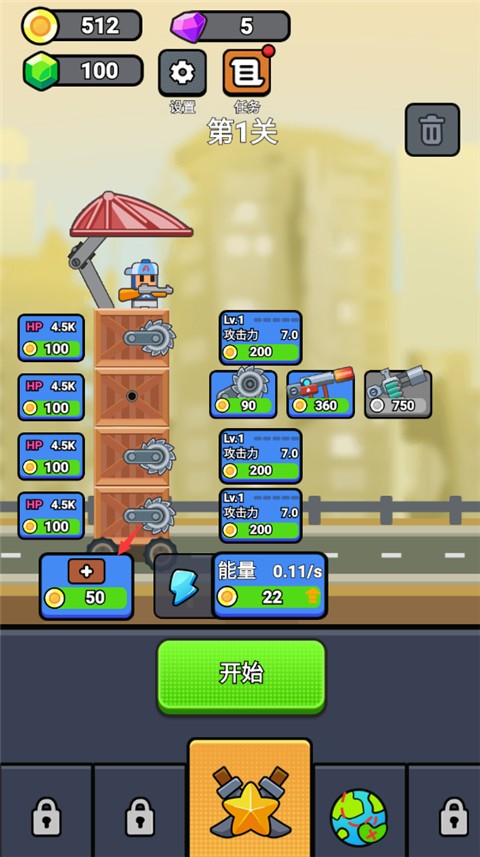 5、击败僵尸可以获得金币,结算时可以领取,然后继续升级装备。