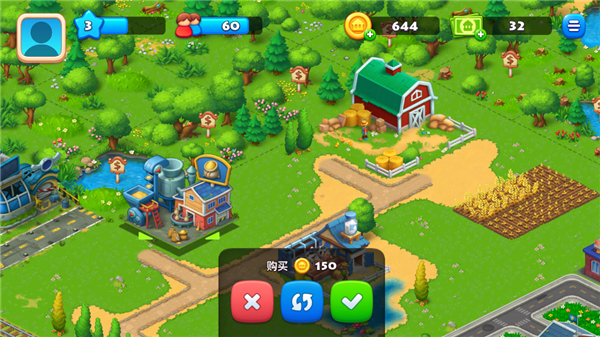 2、建造房屋。游戏中建造房屋也是很重要的哦,更多的房屋满足你升级人口的居住,学校和医院也是小镇必不可少的基础设施哦。所以这也是重要的一步。