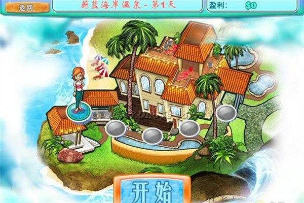 莎丽的温泉是一款经典的时间管理式模拟经营游戏。你扮演主人公莎丽,接手并经营散布于全球各地的温泉水疗中心。在严格的时间限制内,通过精准的点击与流程规划,指引顾客完成进入→更衣→泡温泉→享受附加服务(按摩、餐饮等)→结账离开的全流程,以赚取金币和分数。