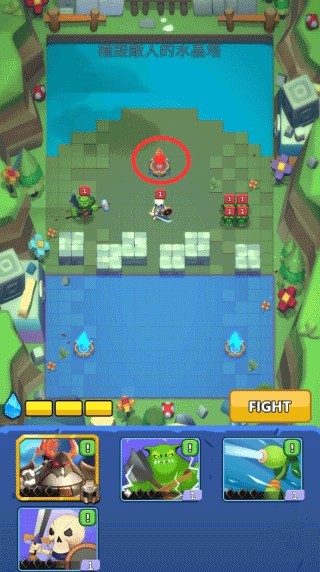 1、利用开局获得英雄进行放置,最终击破水晶获胜。