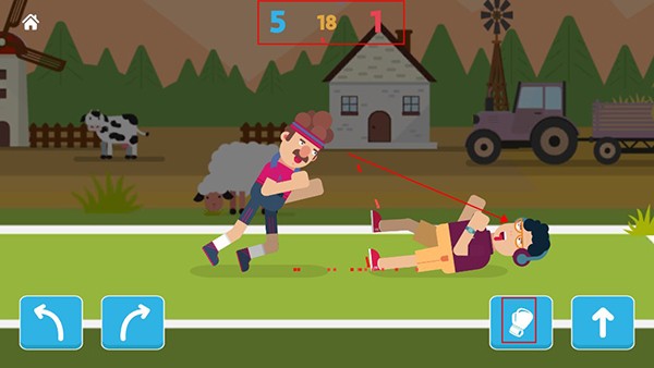 3、进入关卡后,玩家可以通过左侧按钮控制人物左右摇晃,右侧按钮控制出拳和跳跃。