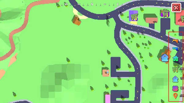 7、点击右上角的地图,可以查看地图上的建筑,比如武器、加、商店、餐饮等,自由的在这个城市探索吧!
