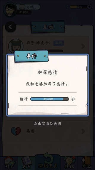 2、设计了丰富的随机事件系统与探索性玩法,玩家每天可以通过外出探索触发不同事件,如发现短期高薪兼职、遭遇诈骗、家人突发疾病等,这些事件充满不确定性,要求玩家审时度势,做出风险与收益的抉择。