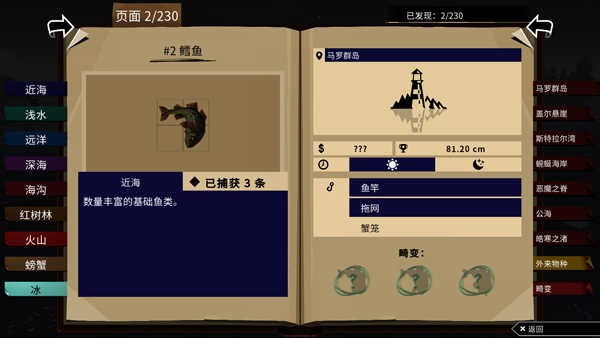 2、探索与驱动系统设计精妙,玩家需要通过捕鱼卖钱来升级船只的引擎、货舱与装备,而更强的船只又能支持你前往更远、更危险的海域,解锁新的鱼类与剧情,形成良好的成长循环。