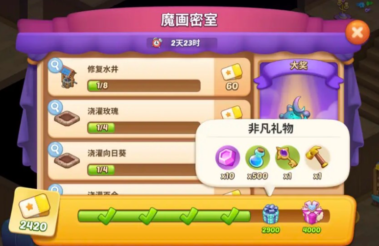 但是,要记住,做龙商人,就要全部完成,因为最后的那个格子,会给最大头的奖励。一般是20体力+1个钥匙。