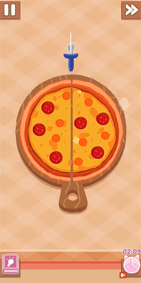 5、使用工具切开披萨,注意右下角有时间限制哦