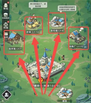5.采集系统深度融入,农场、伐木场、采石场、冶炼厂分别产出粮食、木材、石头、钢铁等,体力随时间恢复