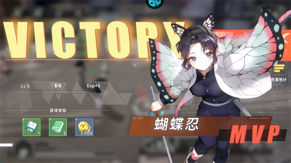 3、游戏开始战斗,首个免费角色“蝴蝶忍”,攻击和受击都会增加怒气值,当怒气值满之后,可以点击屏幕下方的“卡牌”,释放角色技能,可以打出高额伤害。