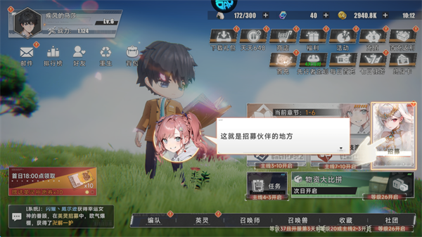 7、点击屏幕右侧的“招募”可以获得新的角色。