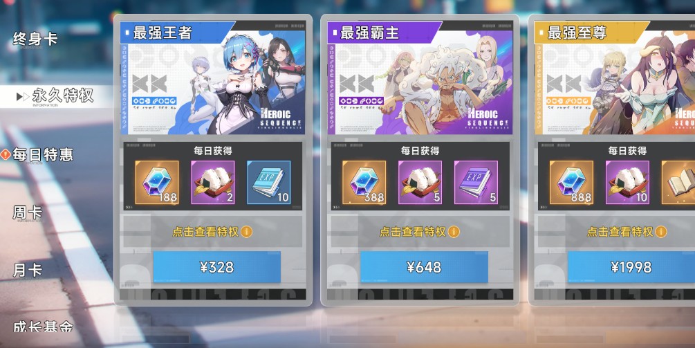 2、超值月卡终身卡微氪党必备,钻石领领领