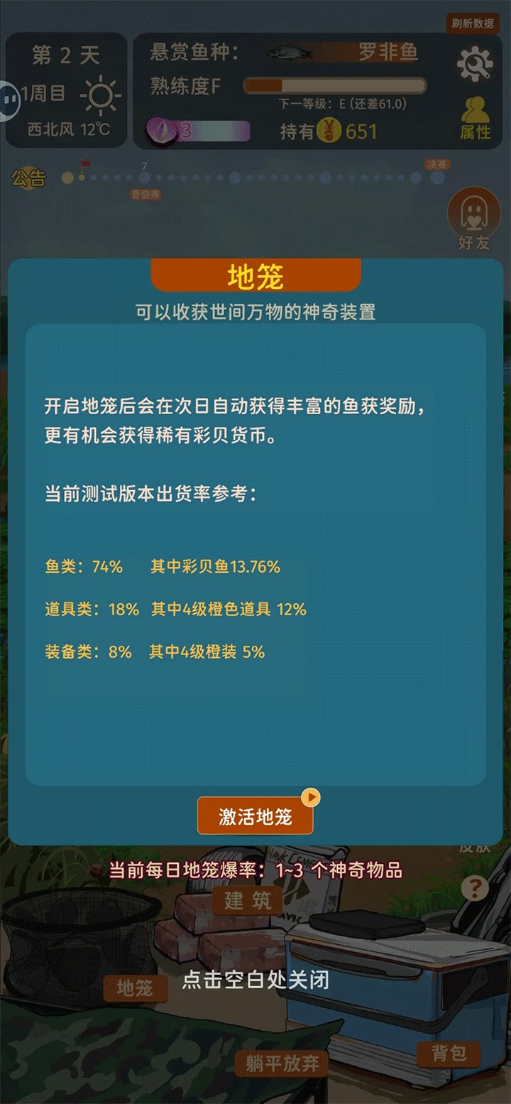 拿到了免广卡以后,我们可以直接点击地笼,然后在第一天就解锁地笼(不着急的可以等第五天,小田花会帮你免费解锁地笼一次)