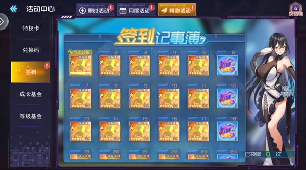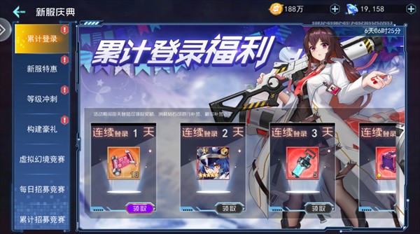 连续登录可获得丰厚奖励,包括双倍幸运券、5星角色碎片、蓝色进阶材料和红色装备箱,同时还有等级冲刺、构建豪礼等子活动,覆盖角色、装备、材料,是前期战力提升的关键。