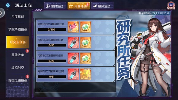 完成不同星级的研究所任务,可获得双倍幸运券、进阶材料和神秘英雄碎片,是中期稳定获取养成资源的重要途径。