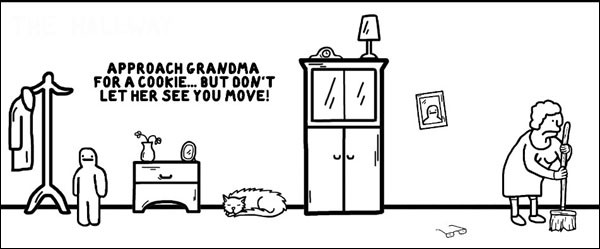 奶奶的脚步是一款休闲益智闯关手游。改编自经典的英国儿童游戏“红灯绿灯”。奶奶的脚步游戏采用独特的黑白线条画风,白色背景搭配黑色线条勾勒出精致细腻的场景,这种极简的美术风格营造出既清新又带着淡淡幽默的诡异氛围。你是一个嘴馋的孙子,奶奶手里那盘香喷喷的饼干让你垂涎欲滴。然而,奶奶手里的枪可不是摆设,你必须小心翼翼,趁她不注意的时候悄悄前进,一旦被发现,迎接你的可能就是一颗无情的铅弹。