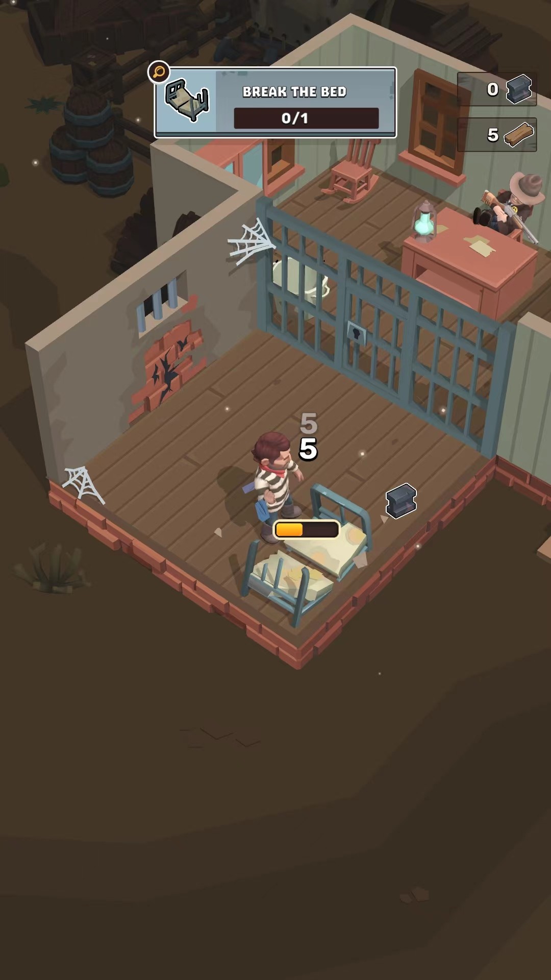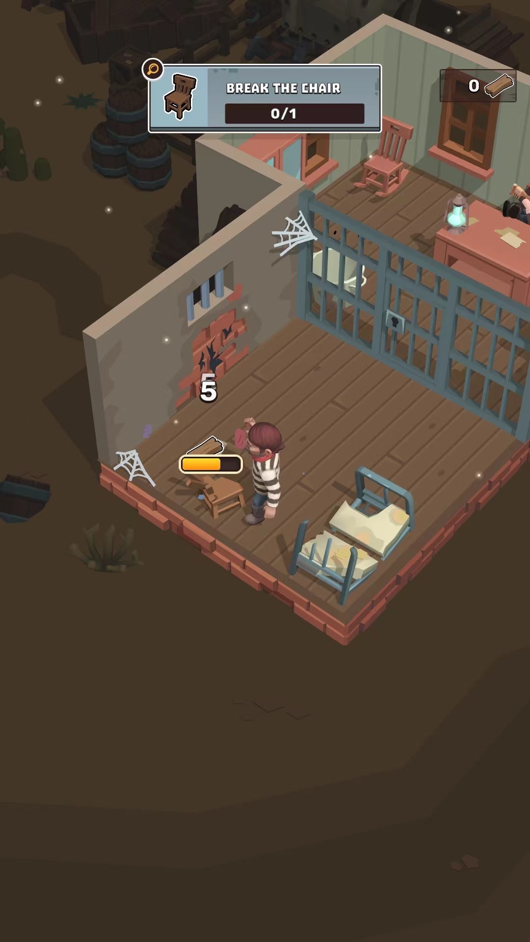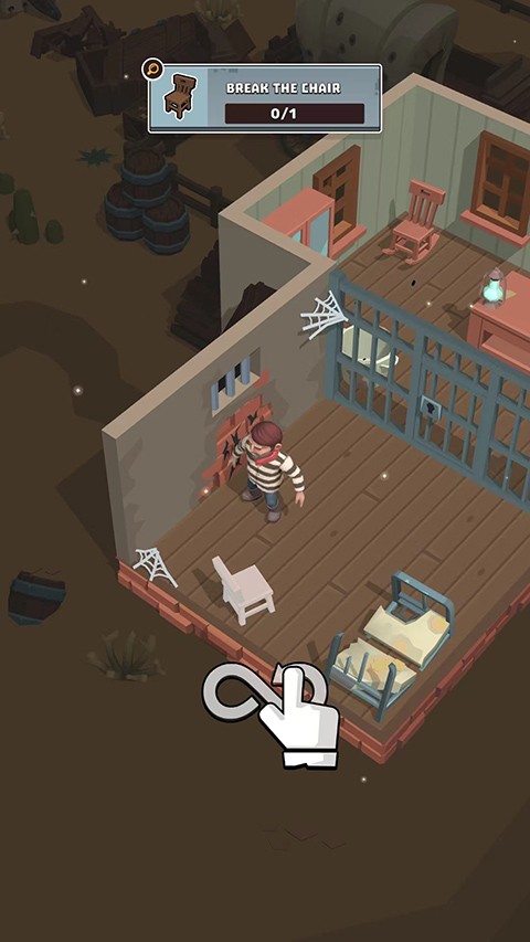 3、当角色接近物品时,可以触发动作,进行破坏并收集所需的材料,比如从椅子中获得木材。