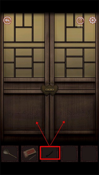 8、点击左边的房子,用木炭涂在门上,获得开门的线索;
