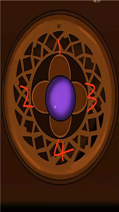 回到前面走廊,右边的墙,墙上红灯笼1个蜡烛,紫2个,蓝3,绿4,旁边的线索:右红1,下紫2,左绿4,上蓝3;