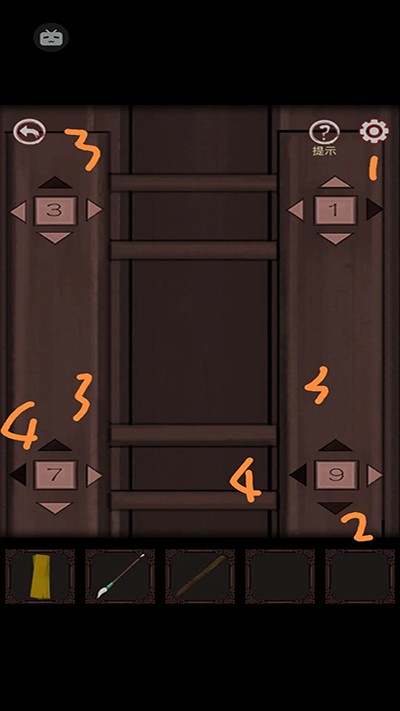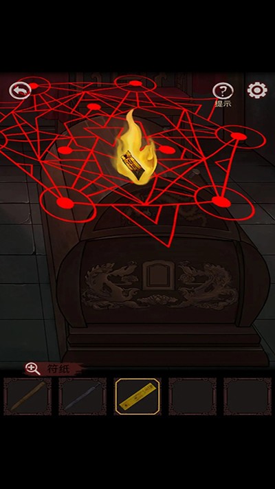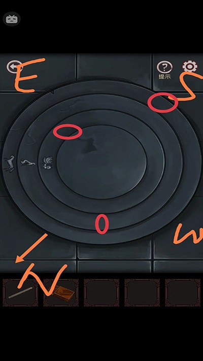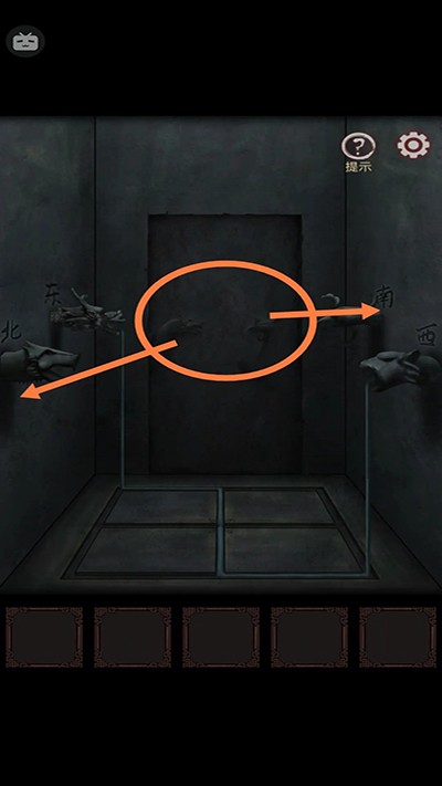 9、进左墓室,用火柴点蜡烛,墙上出现线索,下面四个钟按线索转动,打开头顶的盖子,马上就能出去了;