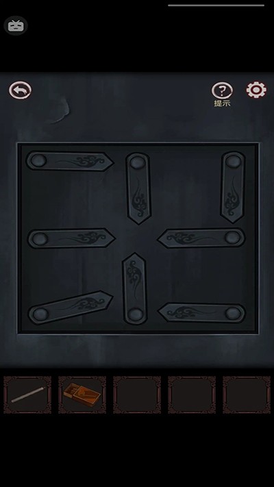 4、左边箱子上有符号刻着,跟之前门里走廊顶的符号很像,组合起来便是密码,开箱获得火柴和部件;