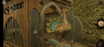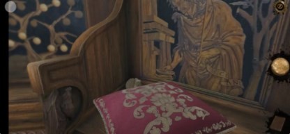 9、回到过去,点击花盆右侧的椅子,先将小鸟浮雕向右拖拽,再拖拽画圈处滑块,点击得到罗马数盘
