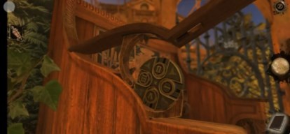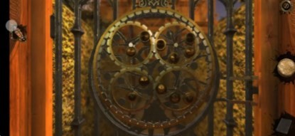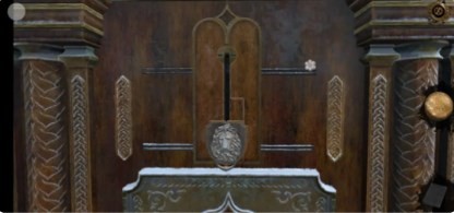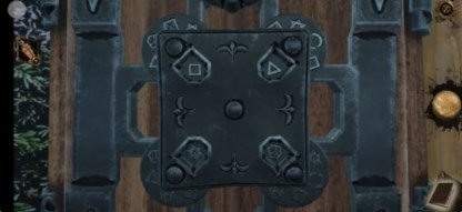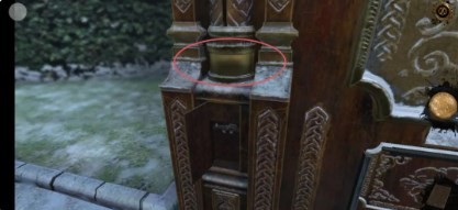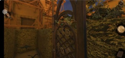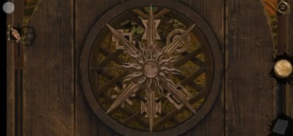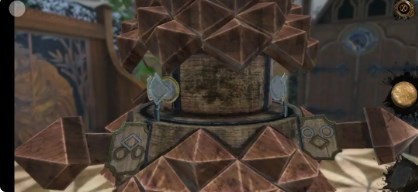 16、回到过去,将轮盘放置在铁门中,对应铁门上的空心圆环将轮盘调好
