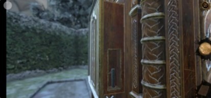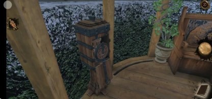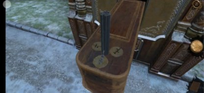 10、回到现在,将画面左转,拖拽左侧机关上方的金属旋钮,再将罗马数盘放置在上面