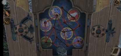 14、使线连接每一个点,点击得到轮盘,再解开下方的机关