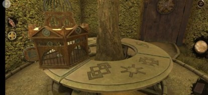 20、然后先解开铁笼门上的机关,点击得到门内侧的旋钮,再将旋钮插入笼子上插口处