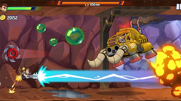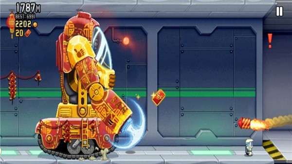 疯狂喷气机2是一款将横版跑酷与射击玩法深度融合的动作冒险游戏。Barry再次背上喷气背包,冲进反派Brains教授的全新实验室,在躲避激光、导弹与电网的同时,用各种疯狂武器轰开一条生路。疯狂喷气机2最大胆的改变是加入了关卡制推进和Boss战,不再是前作单纯的无尽狂奔,而是每一次冲进实验室都有明确目标。躲避与射击一气呵成,让人一玩就停不下来。