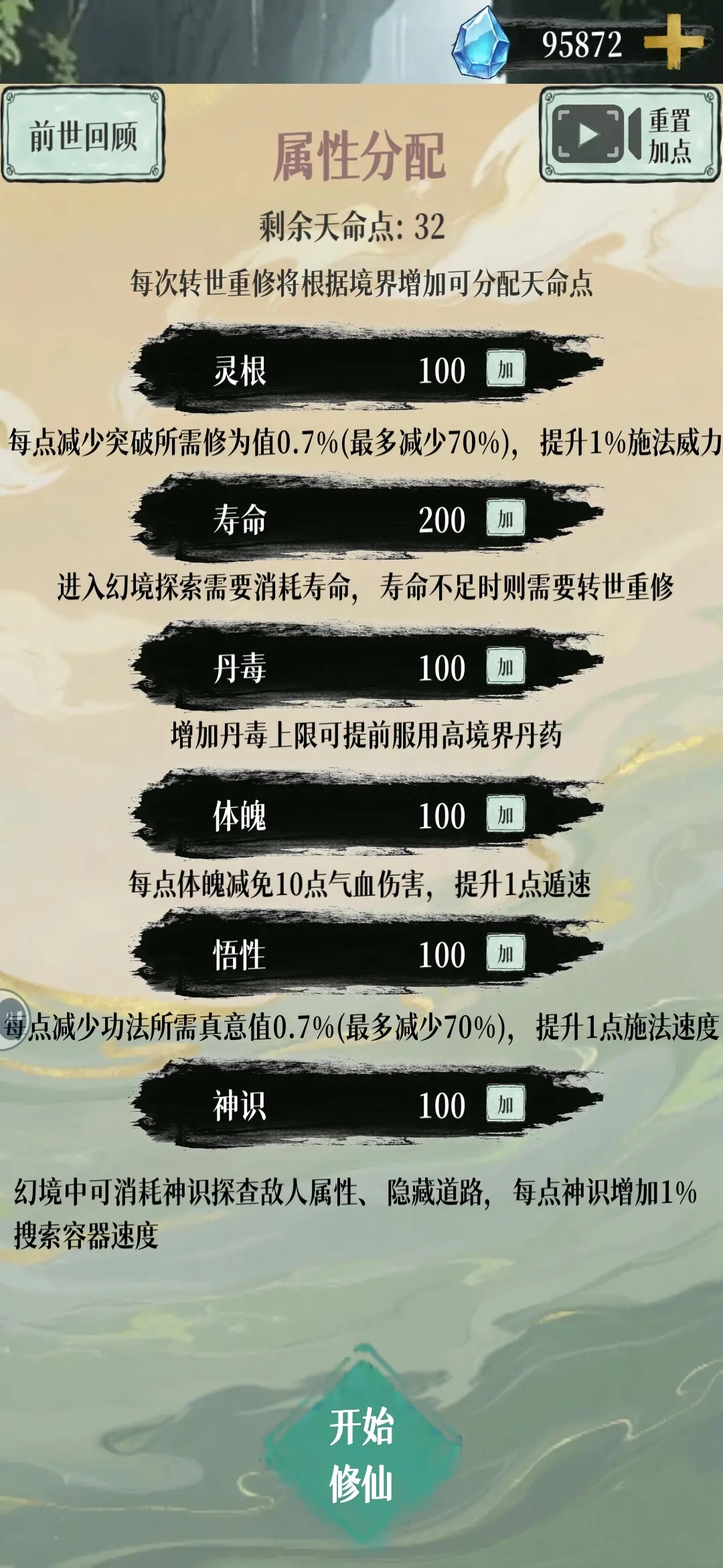 天命点过多无用,转世可重置寿命。